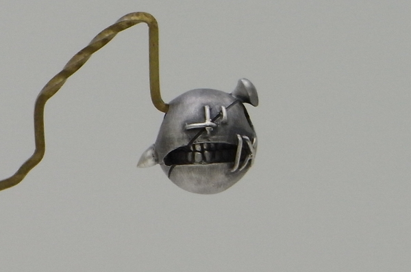 | 天使と悪魔が縫われてひとつになっているようなデザイン。 天使の輪も縫い目の位置でザックリ切られている所と、ひとつのスマイルにすべての仕上げが入っているのが印象的なデザイン。 ひとつめから形にするのも仕上げも難関なデザインでしたが、おかげで形になる頃にはカスタム創りの勘が取り戻せました。 |