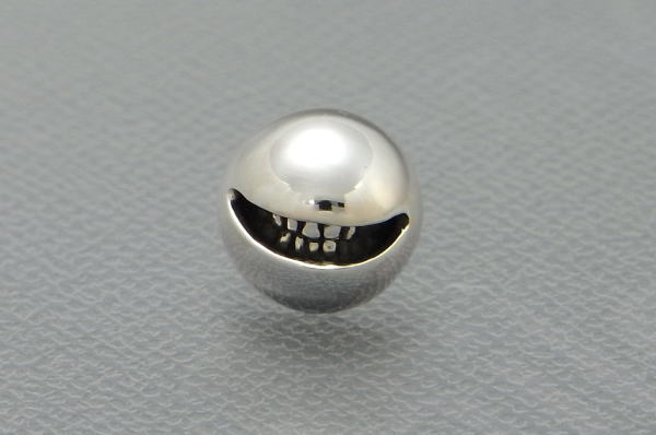 | そういえば、Sサイズのsmile ballのピアスがないなぁと思って創りました。 どうして今まで思いつかなかったのか(笑 このサイズを普通に半分にすると、ピアスにするにはちょっと重いので、ぎりぎりまで厚みを削りました。 この大きさのニヤリは、耳元では存在感大です。 smile ball Sサイズはこんな感じです。 |