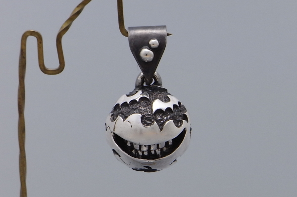 | 満月の夜に飛ぶコウモリを全体に装飾したペンダント。 そのコウモリ達が集まり、ヴァンパイアのスマイルが現れようとしているデザインです。 【注意】 こちらはペンダントトップのみの販売です。 画像のチェーンは説明文のリンク先で販売しています。 こちらのチェーンは【siver925アズキチェーン3】幅2.8mm 長さ50cmです。 チェーン販売ページ https://sm-silver.com/ch_sv925azuki_normal_1.htm |
