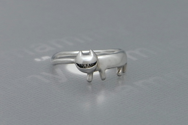 | rabbitteeth'sのmiwaOシリーズのステネコくんと、smile_mammyのスマイルシリーズのコラボレーション。 ニヤニヤわらうステネコくんのリング。 こちらではピカピカ鏡面仕上げのノーマルVer.と、さらに金歯になった24KコーティングVer.を販売。 rabbitteeth'sのHPでは、味のある燻し仕上げVer.と、全身金色の18KコーティングVer.を販売しています。 rabbitteeth'sのHPはこちら。 |