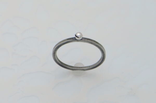 | smile ball picoのシンプルなリング、左前を向いたデザイン。 右手に着けると、smileがちょうどこちらを向きます。 picoのサイズは約3mm、よくよく見ればニヤニヤ笑いが分かります。 シンプルでさりげなく着けられるリングです。 いくつかのpico smile ringと重ね着けしても楽しい。 |