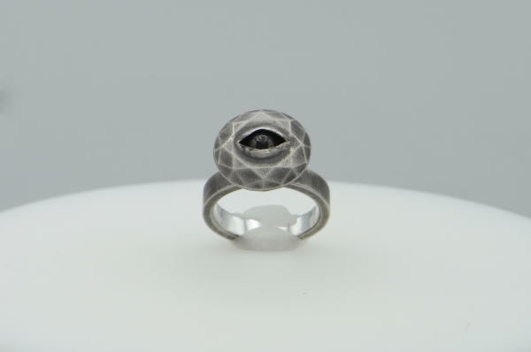 | stare stone ring_4 目がついたファセットカットモチーフのリング。 大きな石がついた指輪と聞いて、頭に浮かべそうな象徴的なデザインを形にしました。 ひとまわり小さなファセットカットモチーフの、stare stone ring_3と重ね着けすることもできます。 |